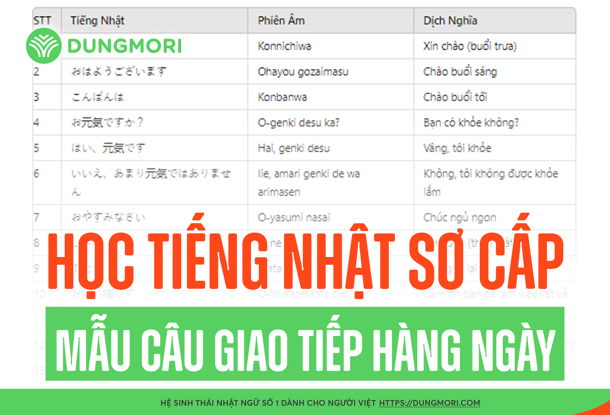 11 tháng 08, lúc 15:10Nếu bạn mới bắt đầu học tiếng Nhật sơ cấp, việc nắm vững những mẫu câu giao tiếp cơ bản sẽ giúp bạn tự tin hơn khi đến Nhật hoặc giao tiếp với người Nhật. Chỉ cần biết một số câu đơn giản nhưこんにちは (Konnichiwa), おはよう (Ohayou), ざいます (Ohayou gozaimasu), こんばんは (Konbanwa)...