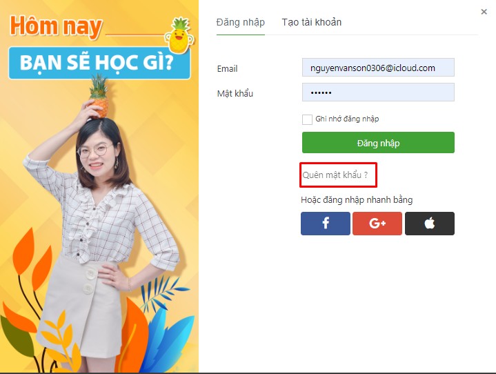 Bước 4: Các bạn nhập vào email và mật khẩu mới muốn đặt nhé: