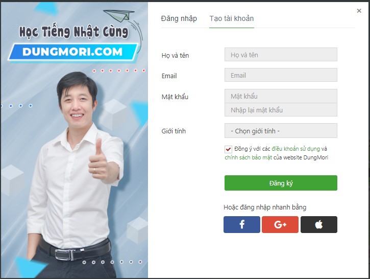 Bước 2: Sau đó sẽ hiện ra cửa sổ mới để đăng ký nhé: