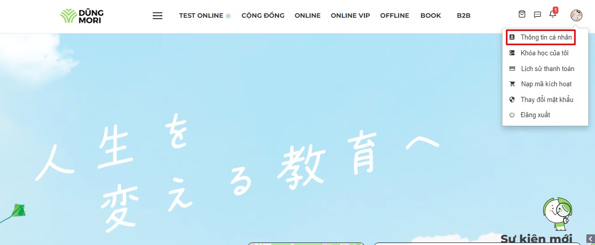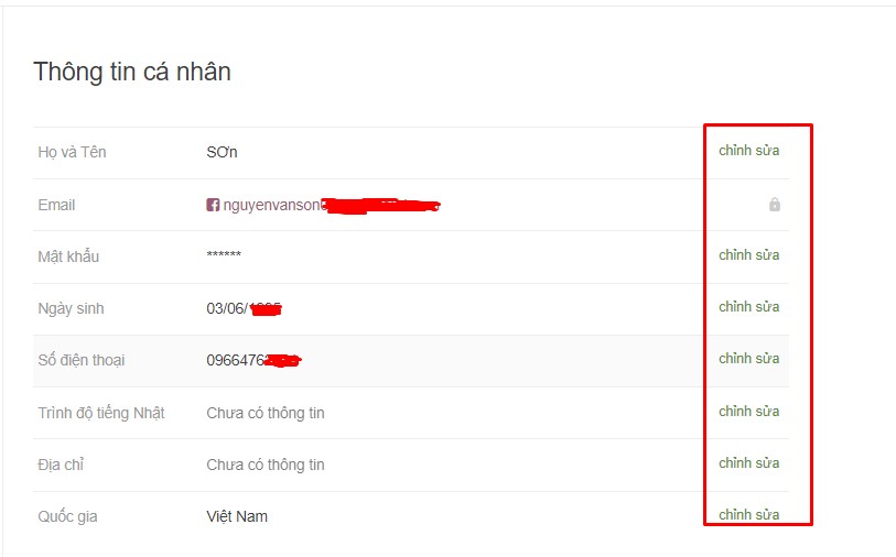 Bước 3: Trong trường hợp bạn muốn thay đổi thông tin tài khoản, mật khẩu ... thì vào click chọn mục Thông tin tài cá nhân như trên hình: